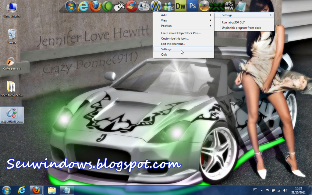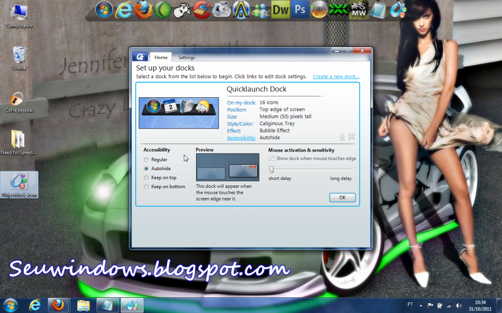 Objectdock, ele serve para criarmos uma barra de ferramentas personalizadas para colocarmos nossos ícones, para que entenda melhor do estou falando vou mostrar algumas imagens com as opções de configuração do programa.