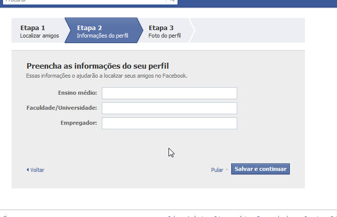 Está etapa não é obrigatória você pode preencher como desejar ou simplesmente Salvar e continuar.