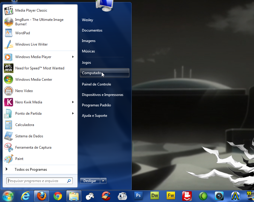 1º- Para começar primeiro você deve ir até o menu iniciar do Windows 7 e clicar em Computador.