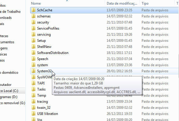 4º- Dentro da pasta Windows procure pela pasta System32.
