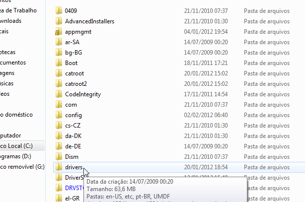 5º- Dentro da pasta System32 procure pela pasta drivers.