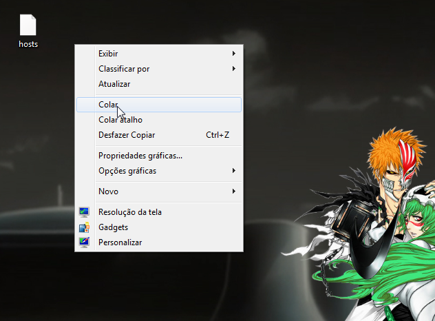 8º- Não feche a pasta etc pois iremos voltar lá. Depois de copiar o arquivo hosts você deve colar ele em sua area de trabalho.