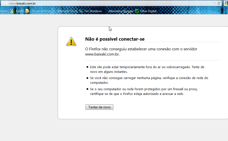 14º- Agora abra o seu navegador e tente entrar no site que você bloqueou para ver se está funcionando perfeitamente. Veja no meu teste com o site Baixaki a mensagem que apareceu ao tentar acessar, é claro que não vou deixar este site bloqueado já que é um dos meus favoritos.