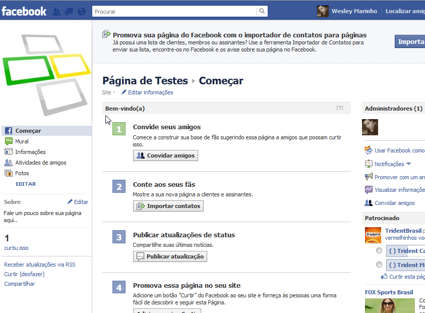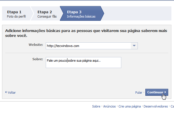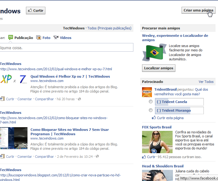 Ela serve também para quem tem Blogs/Sites sendo muito útil para ajudar na sua divúlgação. Vamos então ao simples processo de criação da página.