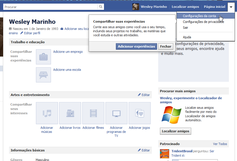 Outro dia mostrei como criar um perfil no facebook, agora estarei mostrando como excluir sua conta do facebook. Como muitos sabem o facebook entrou em uma fase de crescimento a algum tempo atrás que parece que vai conquistar todo o mundo, pois além de ter uma interface muito agradável e ótimos recursos é muito simples de usar e nos deixa sempre em contato com nossos amigos, sem deixar esquecer que com a ferramenta Like Box - Curtir que o Facebook oferece para os sites nós podemos ficar sempre atualizados sobre tudo que gostamos, e também podemos compartilhar com nossos amigos tudo que curtimos.