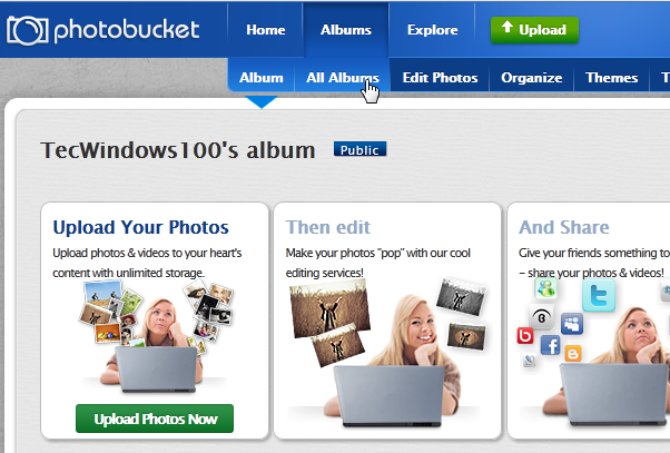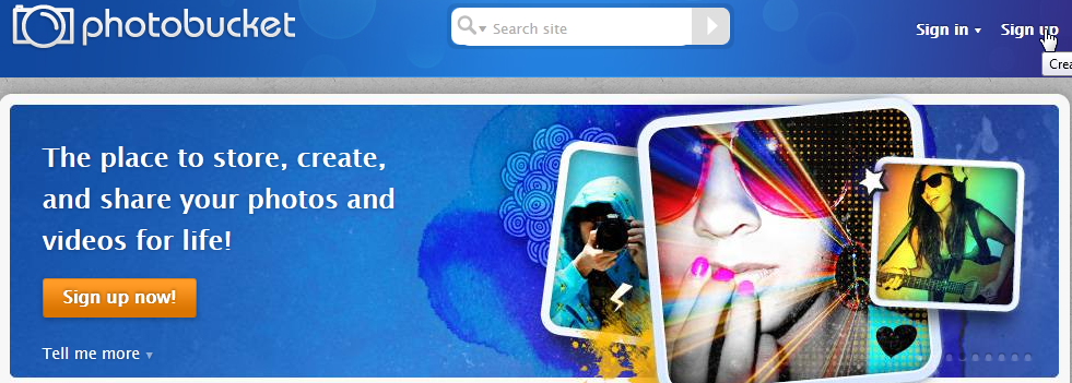 Uma das formas de guardar nossas imagens sem ter que usar um Pendrive, Cd, Dvd entre outros dispositivos são os Sites de armazenamento online. O bom dos sites de armazenamento online é que além de não gastar nada para guardar suas imagens e videos favoritos você ainda não corre o risco de perder nada por causa de riscos, quebras ou perda do dispositivo. O site que eu mais gosto e que armazeno minhas imagens é o Photobucket.com, ele é em inglês mas seu funcionamento é muito simples e fácil de entender, você não precisa ser nenhum expert para usar esse site.