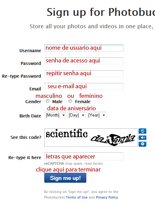 Para poder armazenar suas imagens no site primeiro é preciso criar uma conta gratuitamente, para criar sua conta siga as imagens do tutorial abaixo.