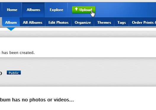 Agora vamos ver como armazenar suas fotos no site. Primeiro clique em Upload.