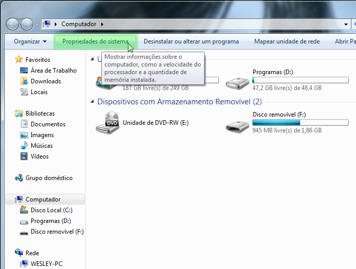 O primeiro método e mais rápido e é só usar uma combinação de teclas do teclado, a combinação é o ícone do Windows " Iniciar + Pause Break "